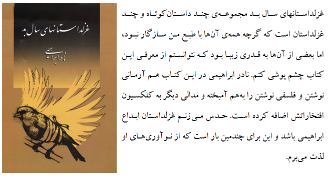 بعد از کتابهای "پاییز بهاریست که عاشق شده است" ، "از شرم برادرم" ، "پادشهر" ، "جشن فراموشی ها".