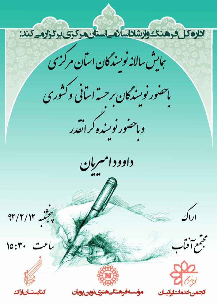 ضمنا نشست ادبی با حضور محمدرضا سرشار، عصر روز پنج شنبه مورخ 1392/02/05 در محل کتابستان اراک برگزار میگردد. حضور در این نشست ادبی برای عموم آزاد است.